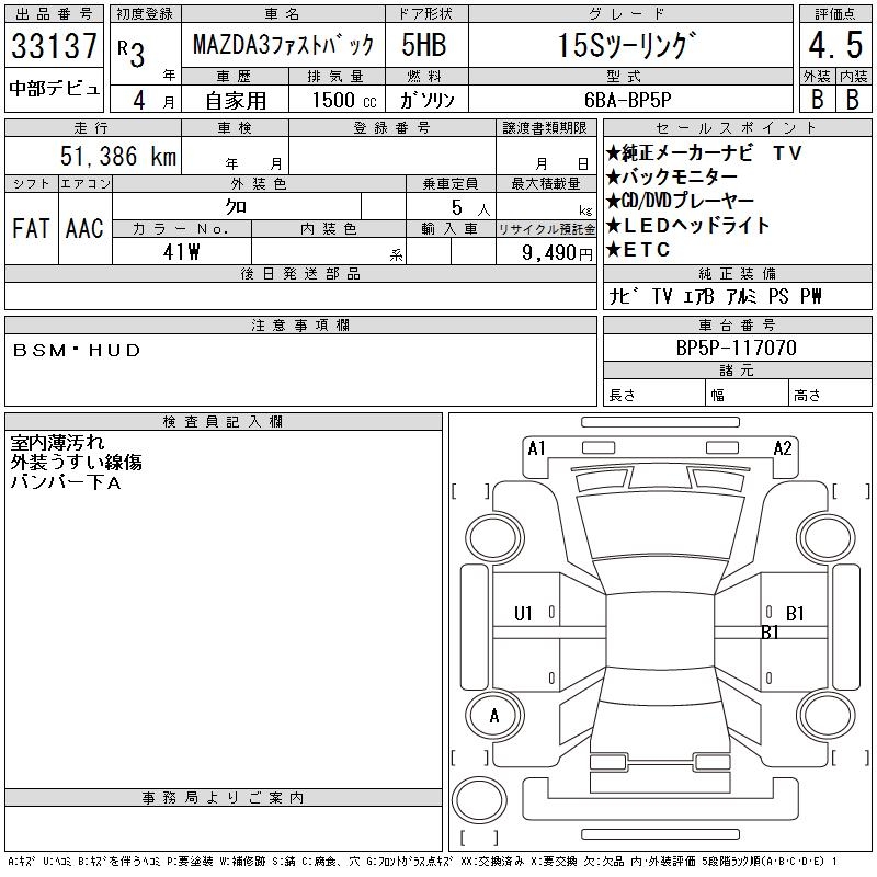 MAZDA MAZDA3 FASTBACK - лот 33137