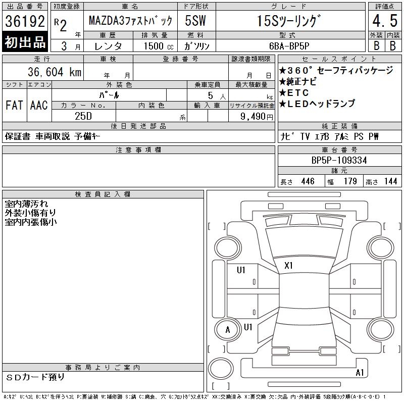 MAZDA MAZDA3 FASTBACK - лот 36192
