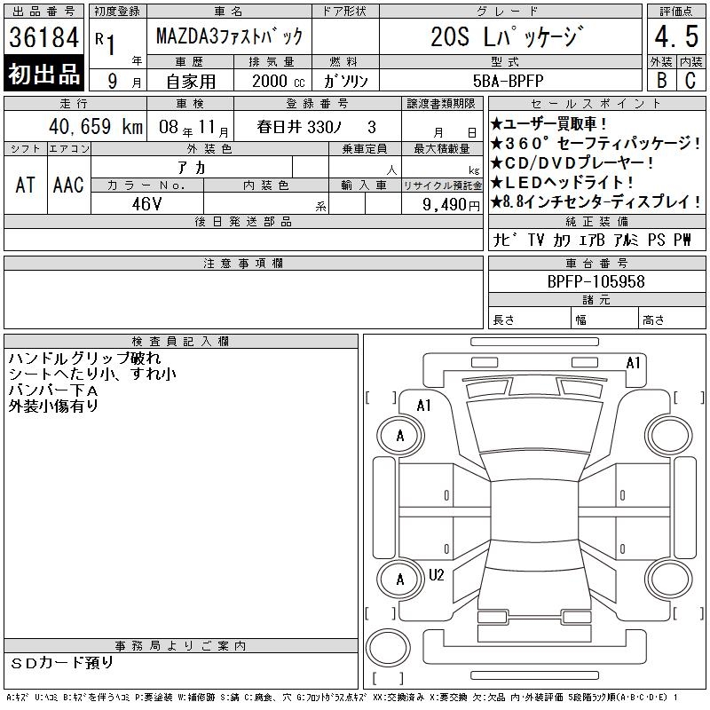 MAZDA MAZDA3 FASTBACK - лот 36184