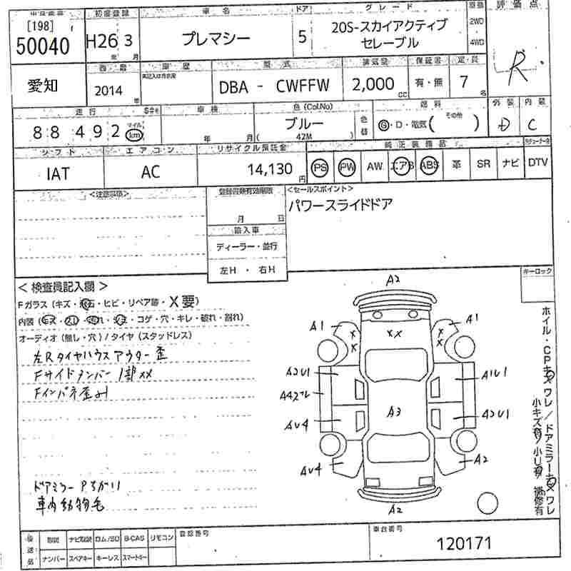 MAZDA PREMACY 20S- Skyactive selebre - лот 50040