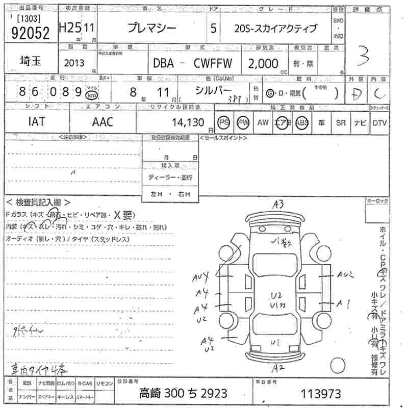 MAZDA PREMACY 20S- SKYACTIVE - лот 92052