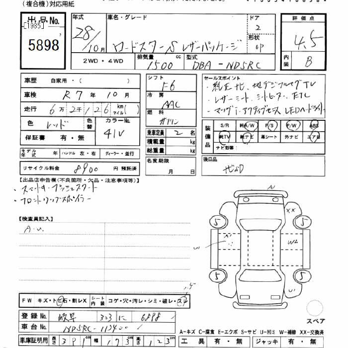 MAZDA ROADSTER S LEATHER PACKAGE - лот 5898