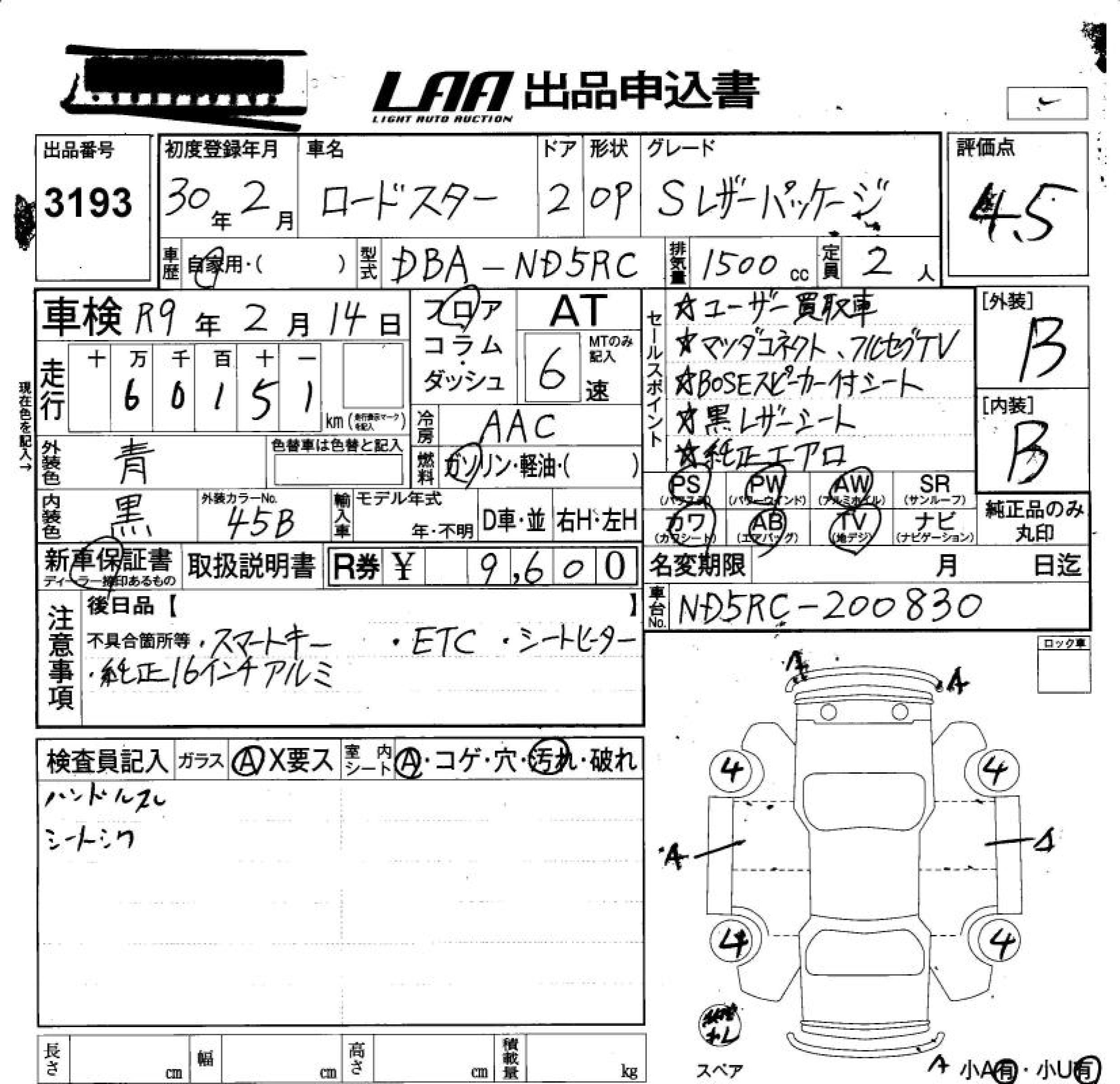 MAZDA ROADSTER S LEATHER PACKAGE - лот 3193
