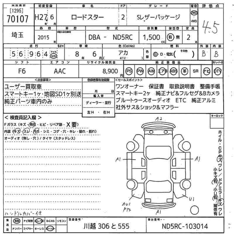MAZDA ROADSTER S LEATHER PACKAGE - лот 70107