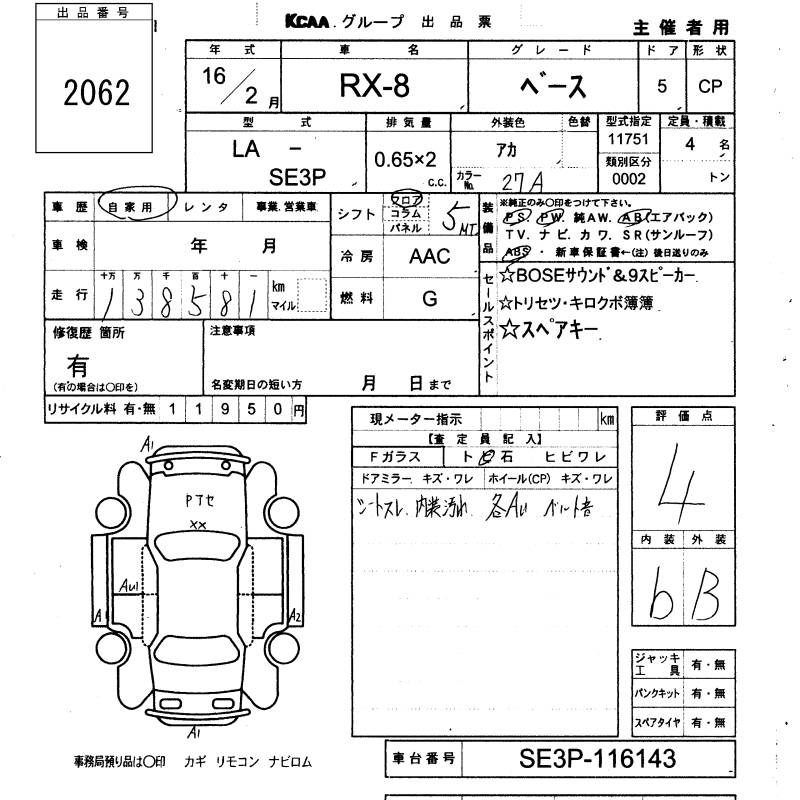 MAZDA RX-8 BASE GRADE - лот 2062