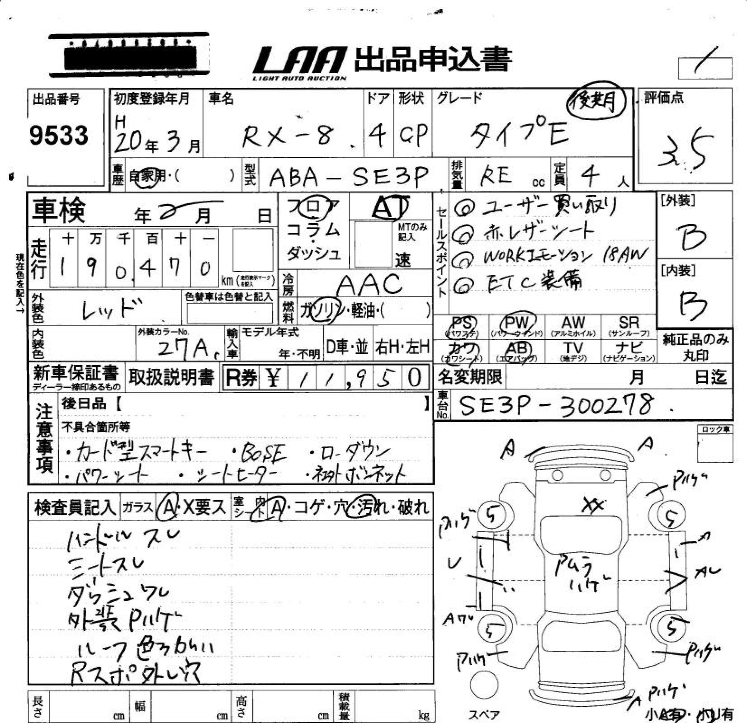 MAZDA RX-8 TYPE E LATTER TERM - лот 9533