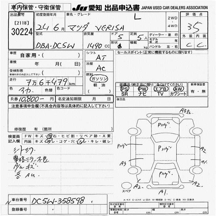 MAZDA VERISA L - лот 30224