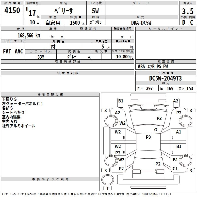 Оборудование: PS P 2 подушки безопасности ABS депозит уплачен 10,800 иен