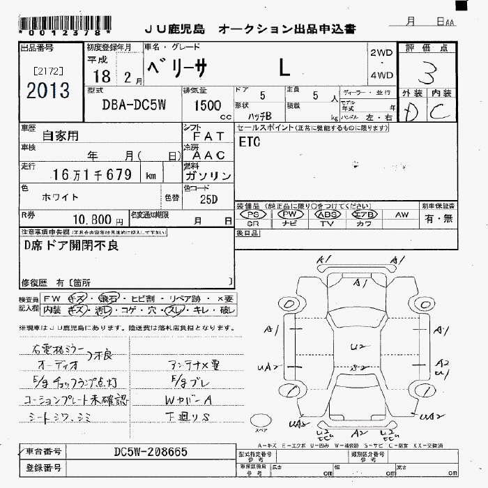 MAZDA VERISA L - лот 2013