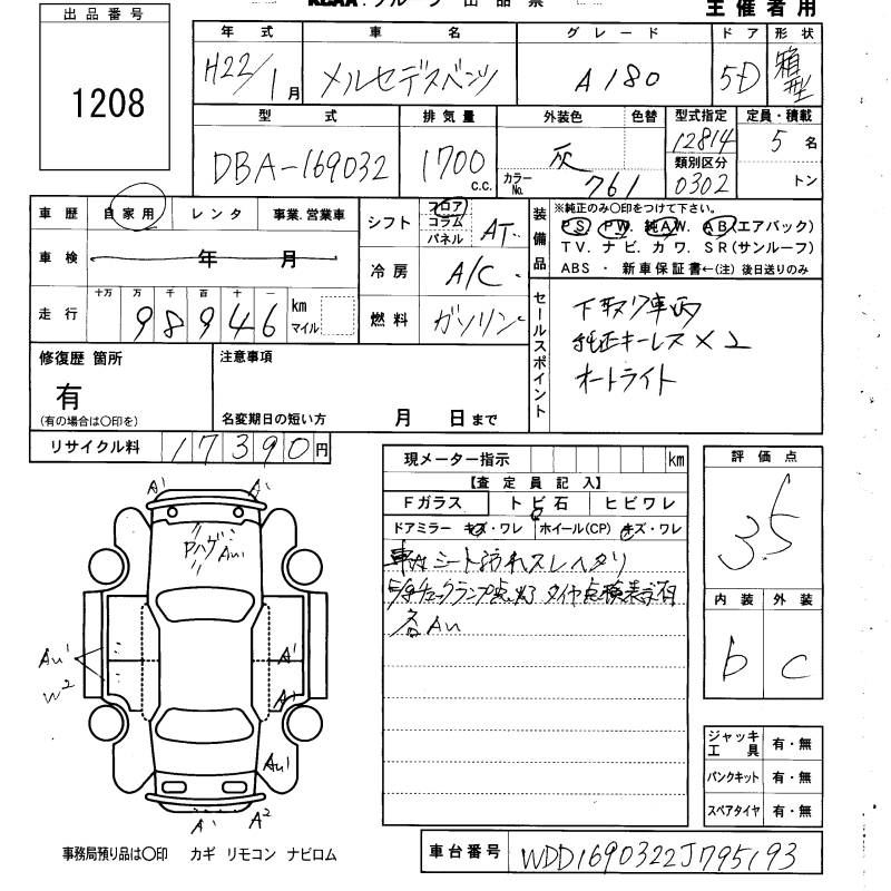 MERCEDES BENZ A CLASS - лот 1208