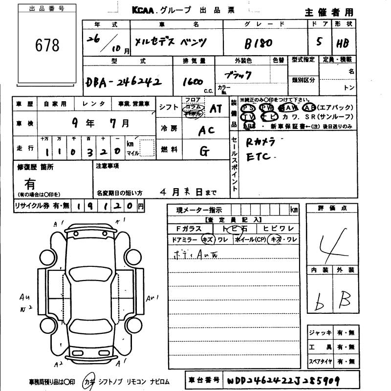 MERCEDES BENZ B CLASS - лот 678