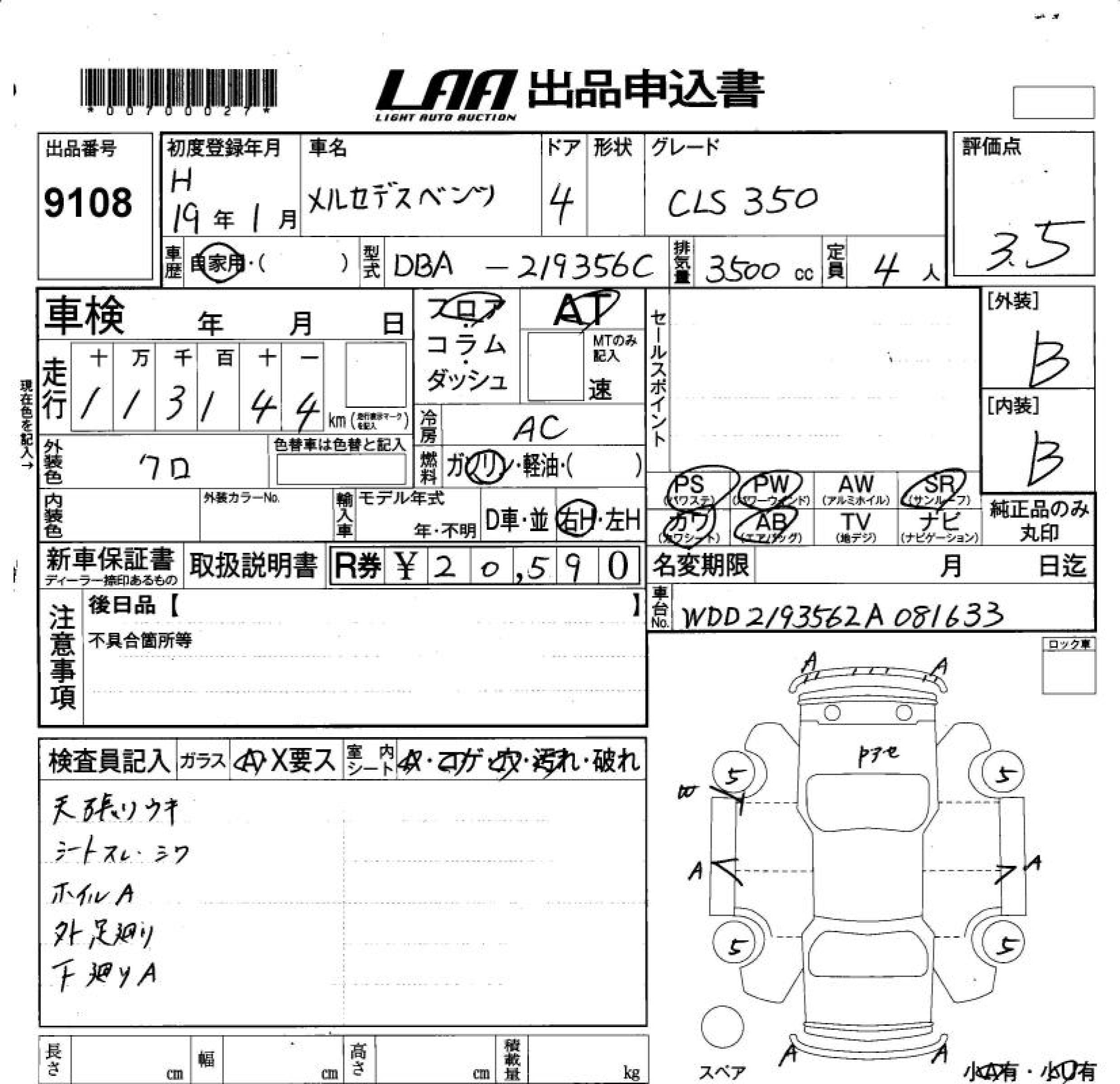 MERCEDES BENZ CLS CLASS - лот 9108