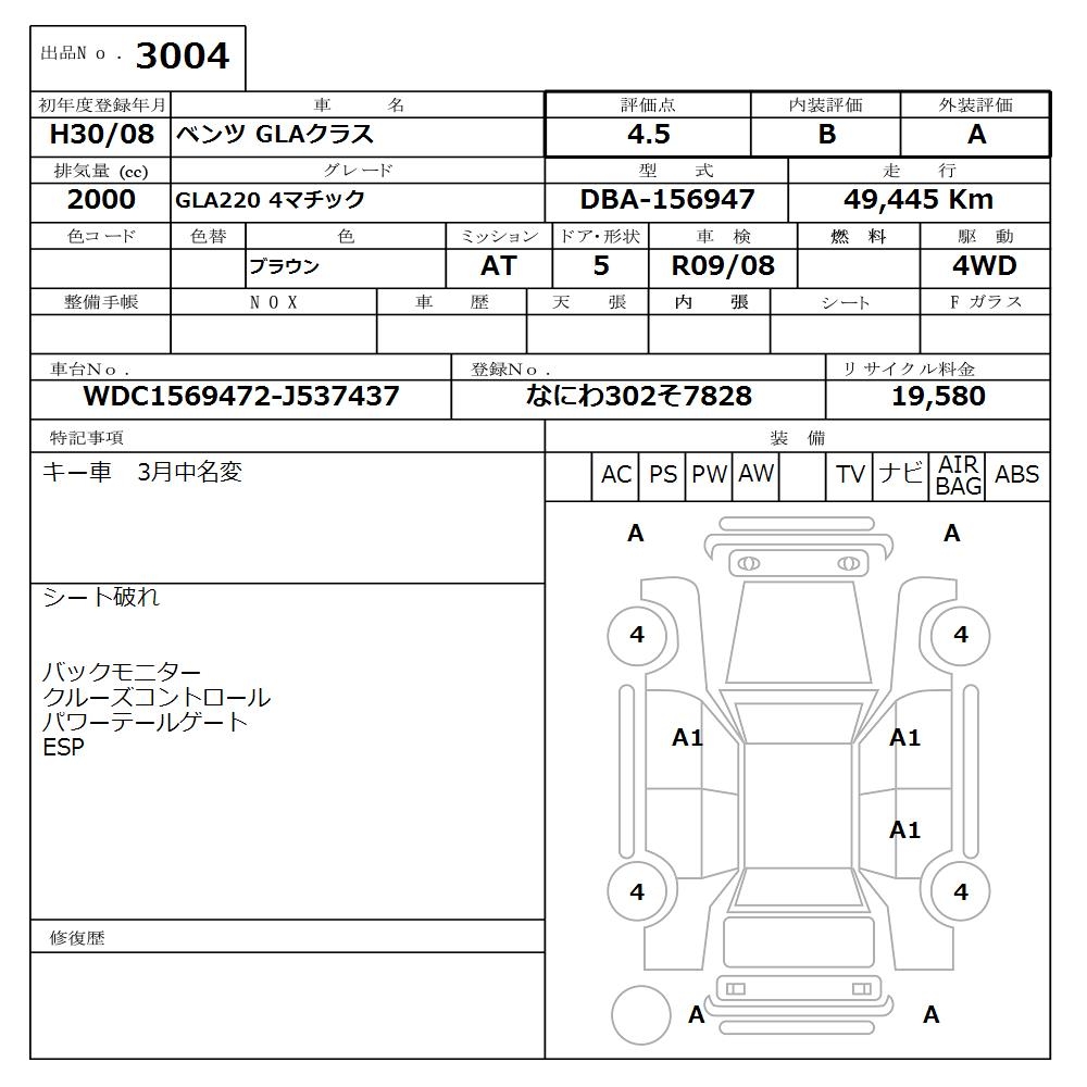 MERCEDES BENZ GLA - лот 3004