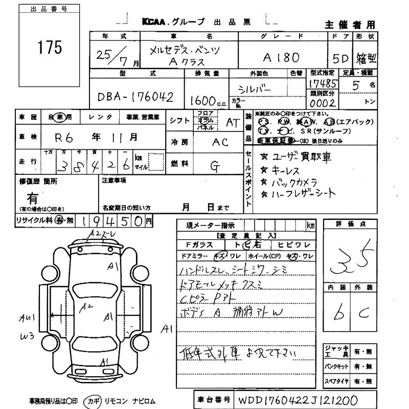 MERCEDES-BENZ A CLASS - лот 175