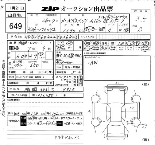 MERCEDES-BENZ A CLASS - лот 649