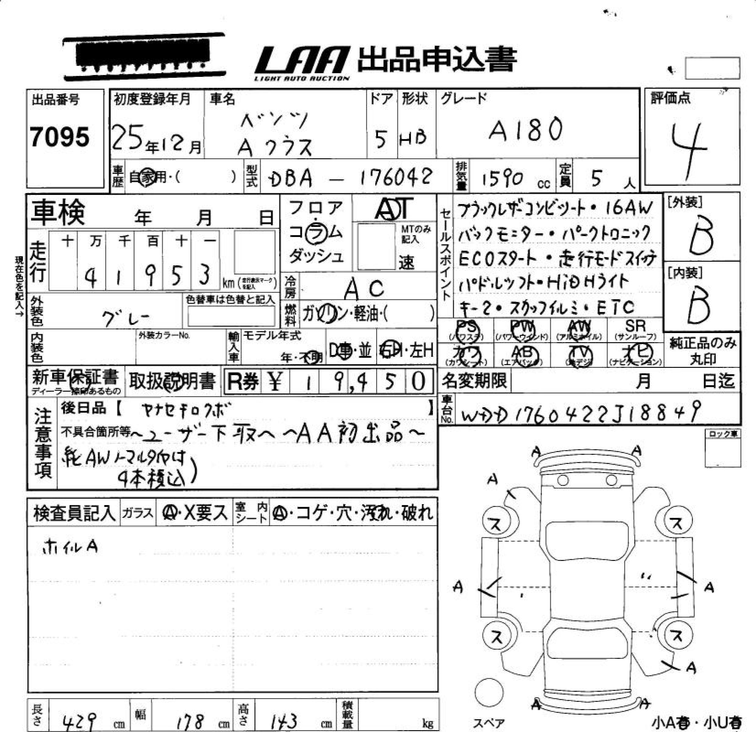 MERCEDES-BENZ A CLASS - лот 7095