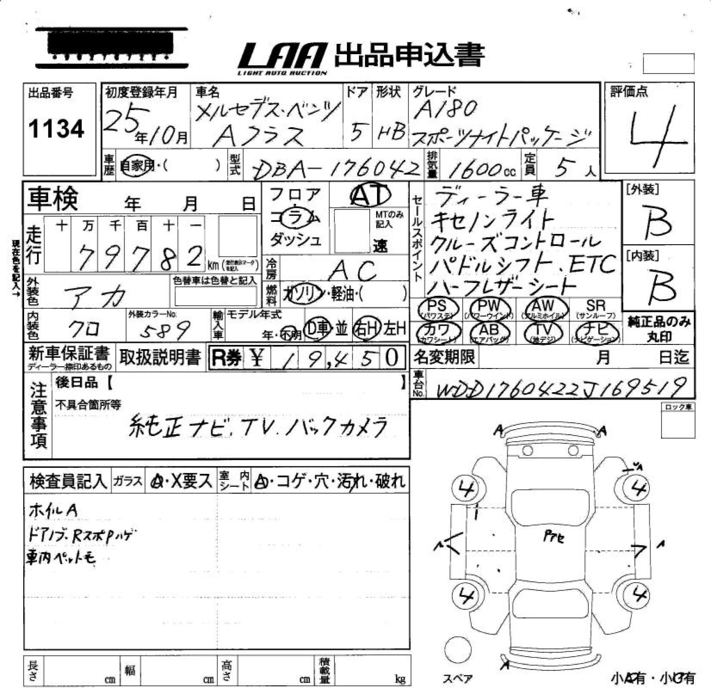 MERCEDES-BENZ A CLASS - лот 1134