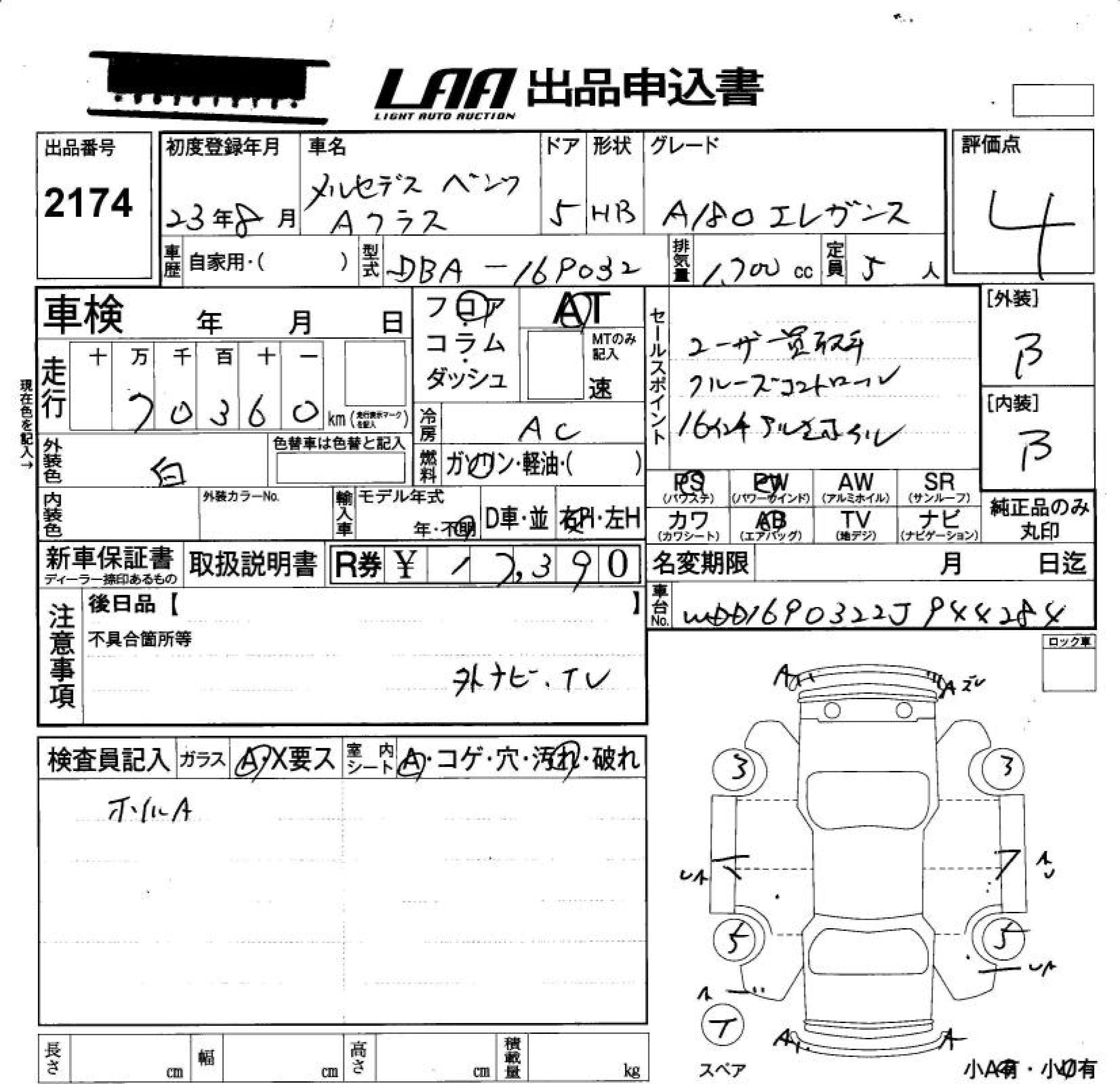 MERCEDES-BENZ A CLASS - лот 2174
