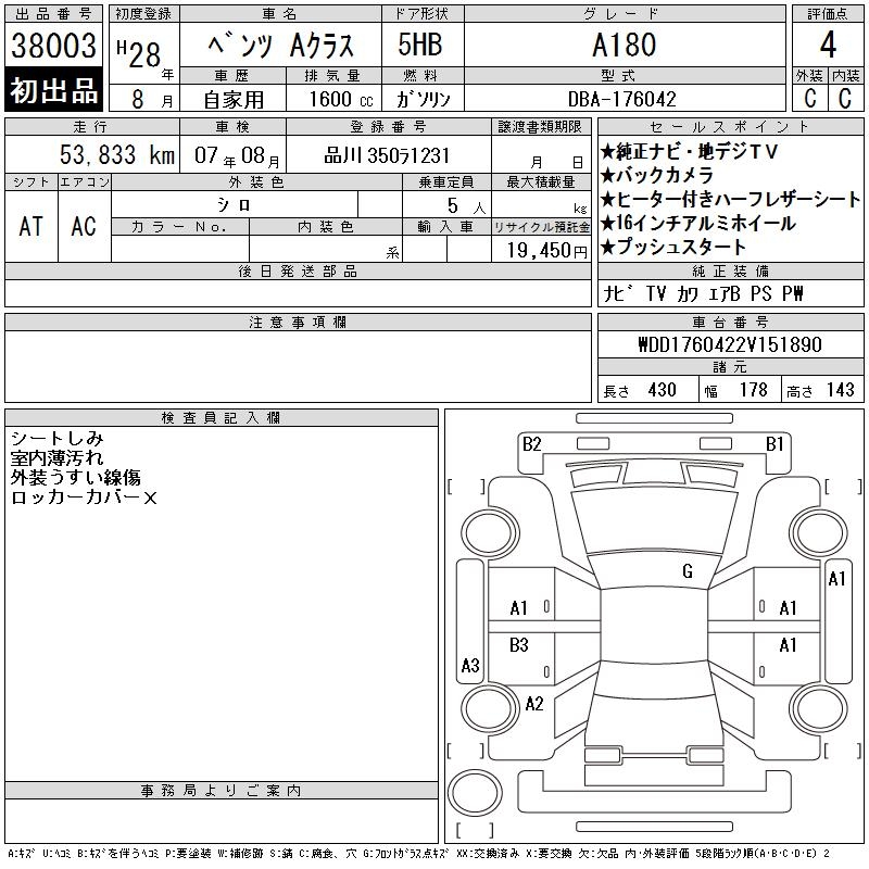 MERCEDES-BENZ A CLASS - лот 38003