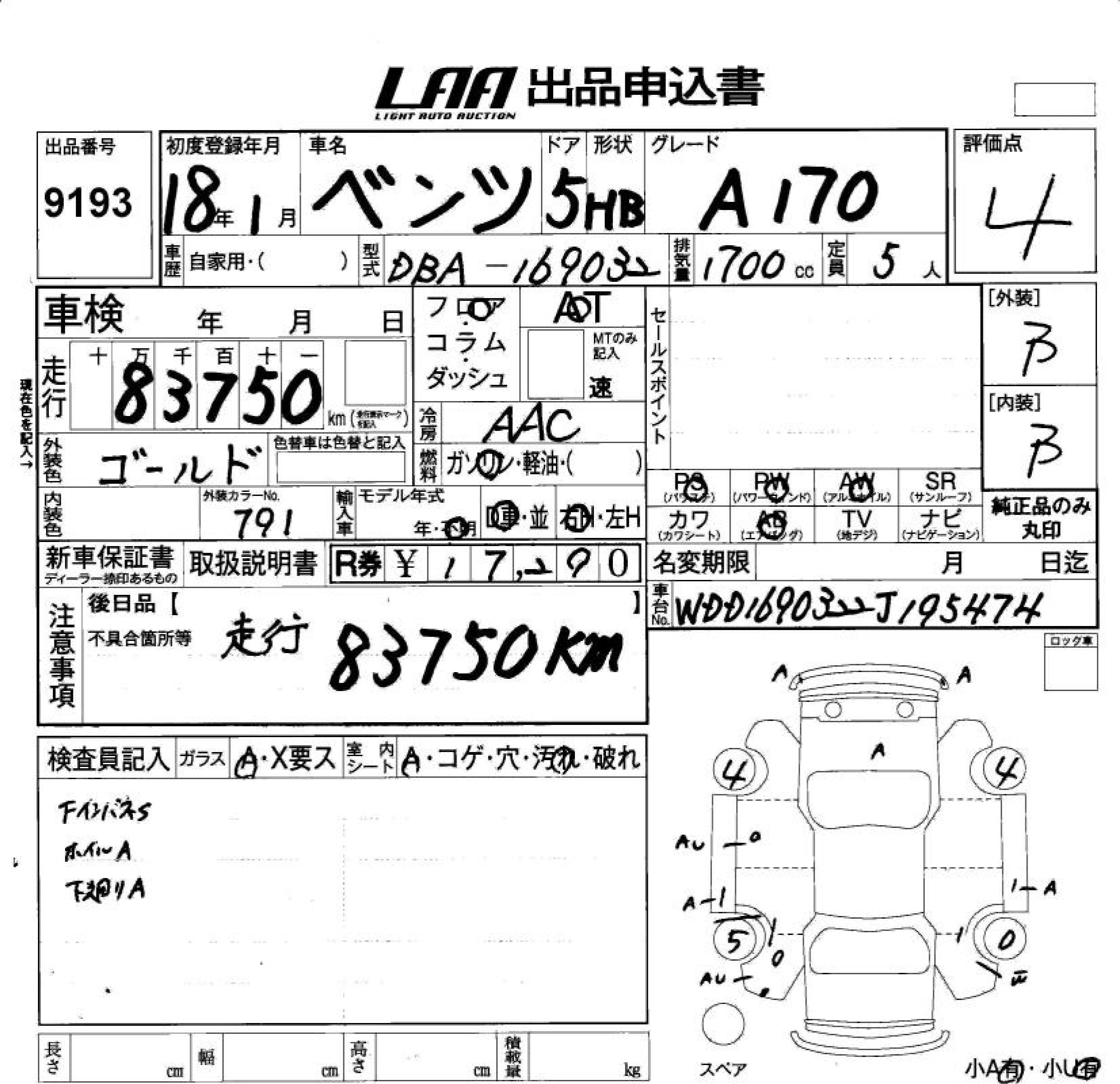 MERCEDES-BENZ A CLASS A170 - лот 9193