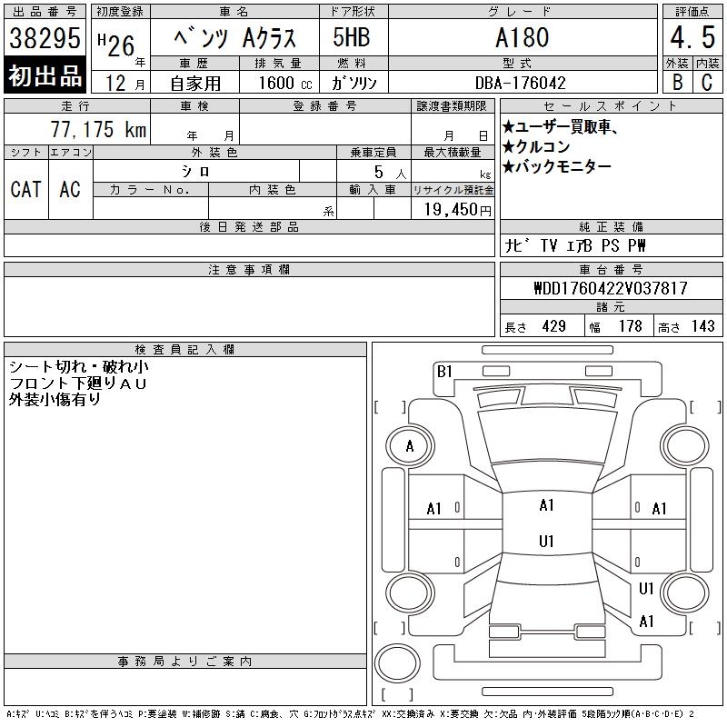 MERCEDES-BENZ A CLASS A180 - лот 38295