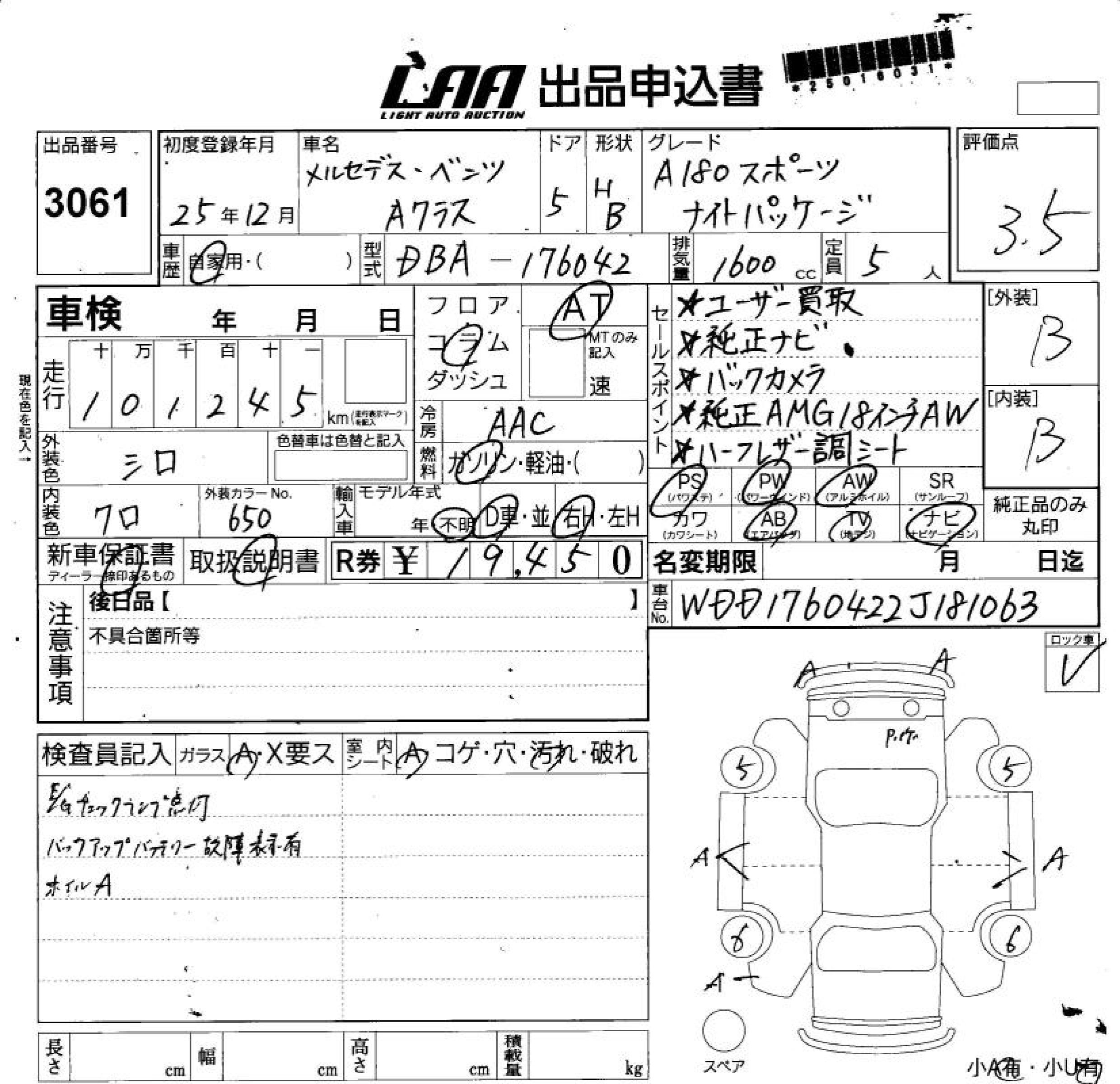 MERCEDES-BENZ A CLASS A180 SPORT NIGHT PA - лот 3061
