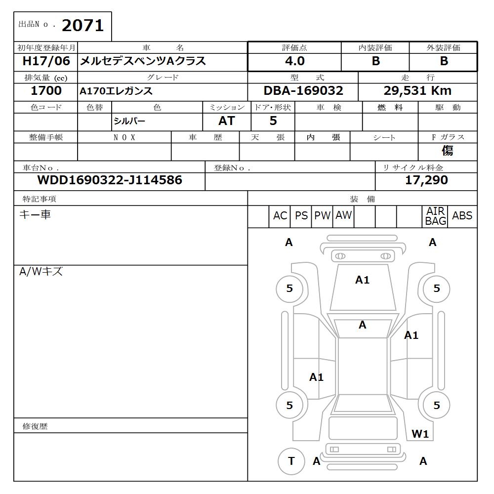 MERCEDES-BENZ A CLASS A170 ELEGANCE - лот 2071