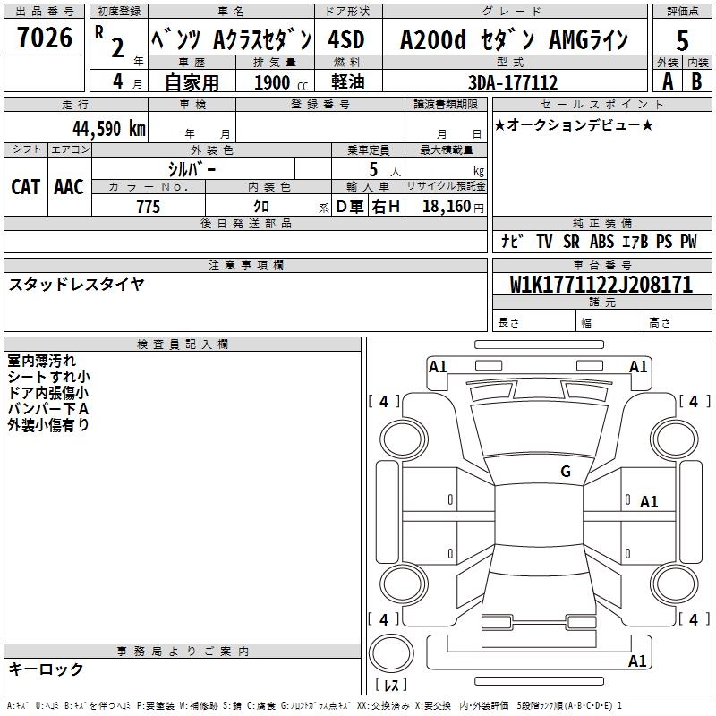 MERCEDES-BENZ A CLASS A200D SEDAN AMG LINE - лот 7026