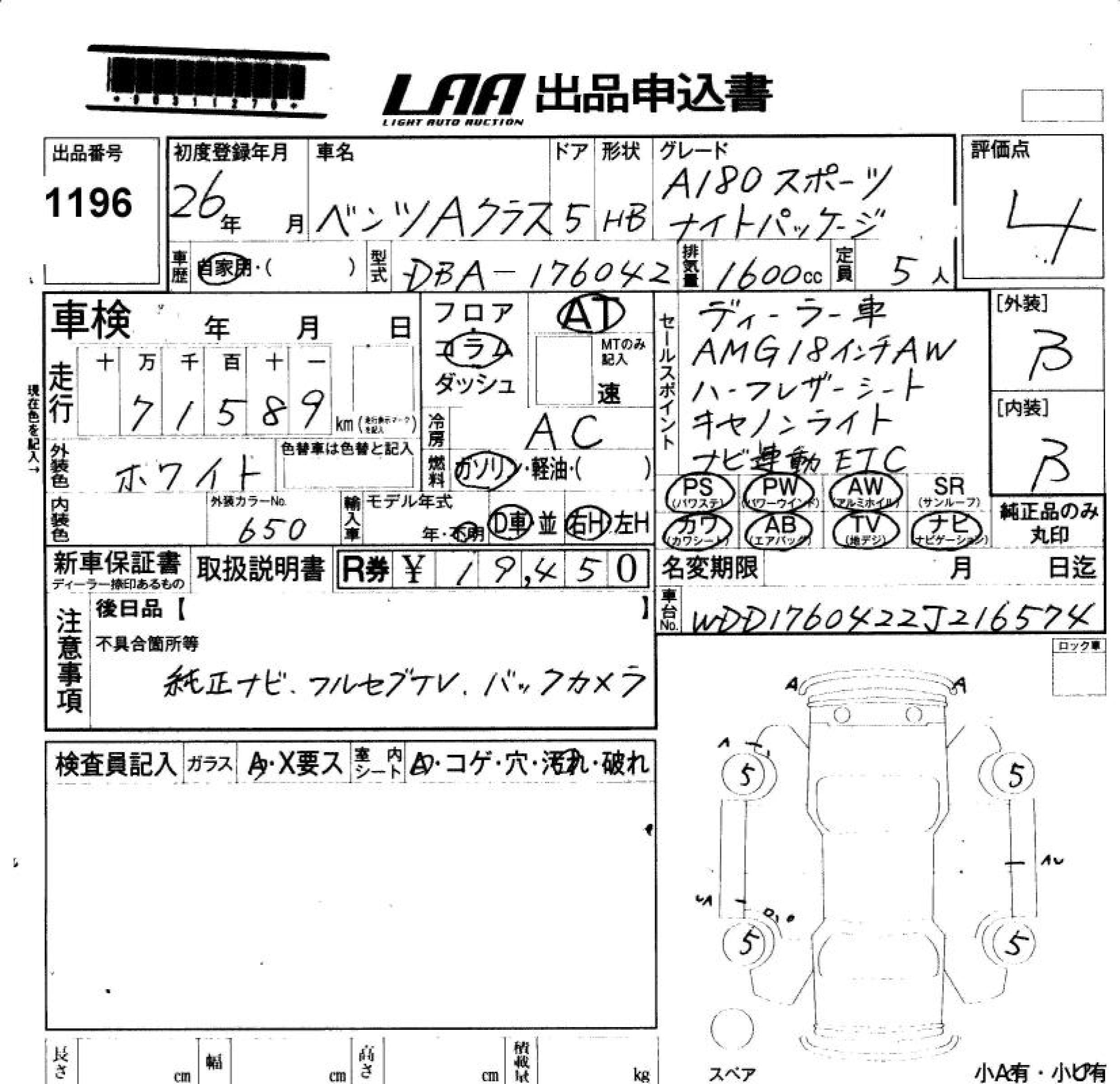 MERCEDES-BENZ A CLASS A180 SPORT NIGHT PA - лот 1196
