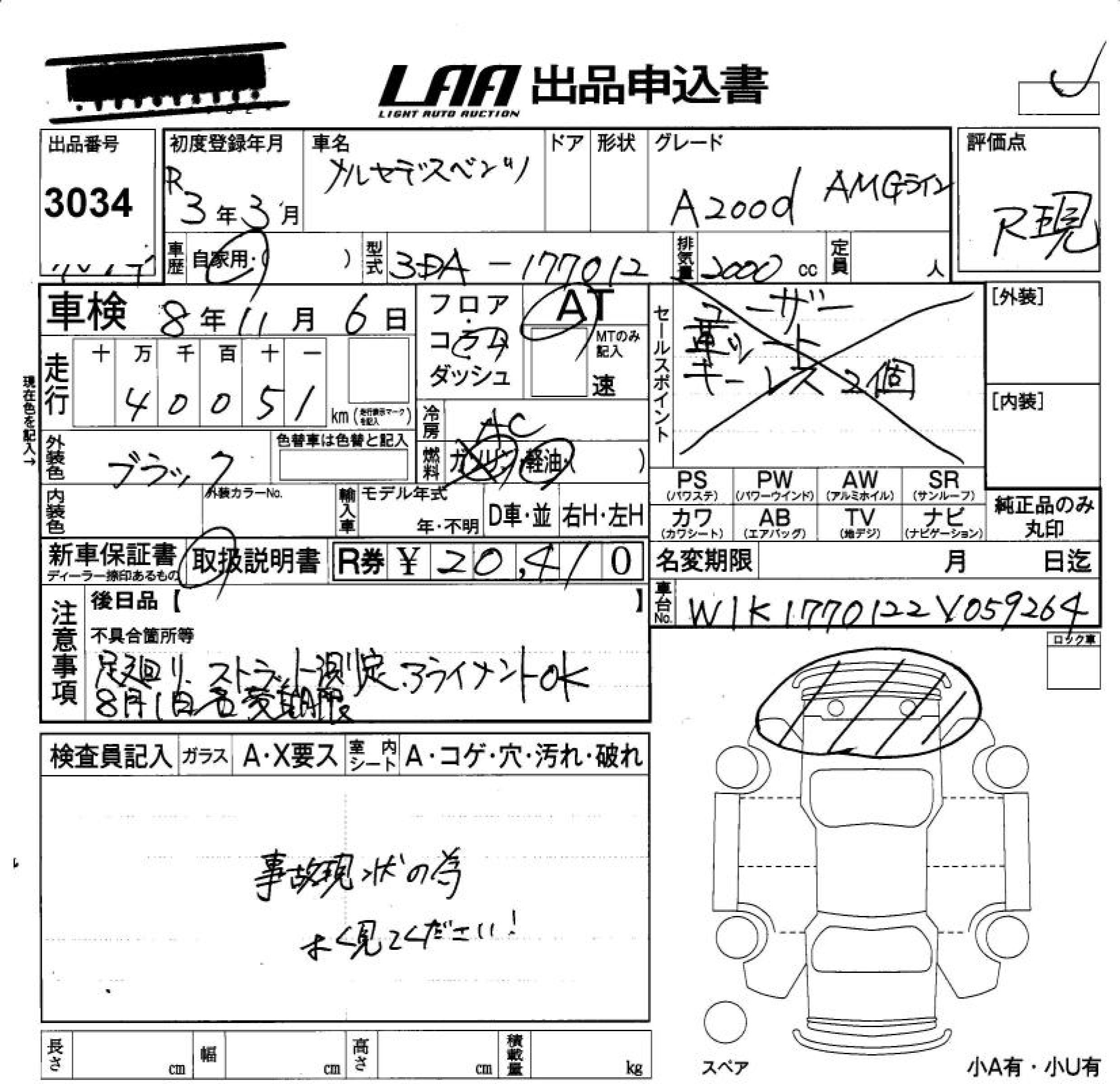 MERCEDES-BENZ A CLASS A200D AMG LINE - лот 3034