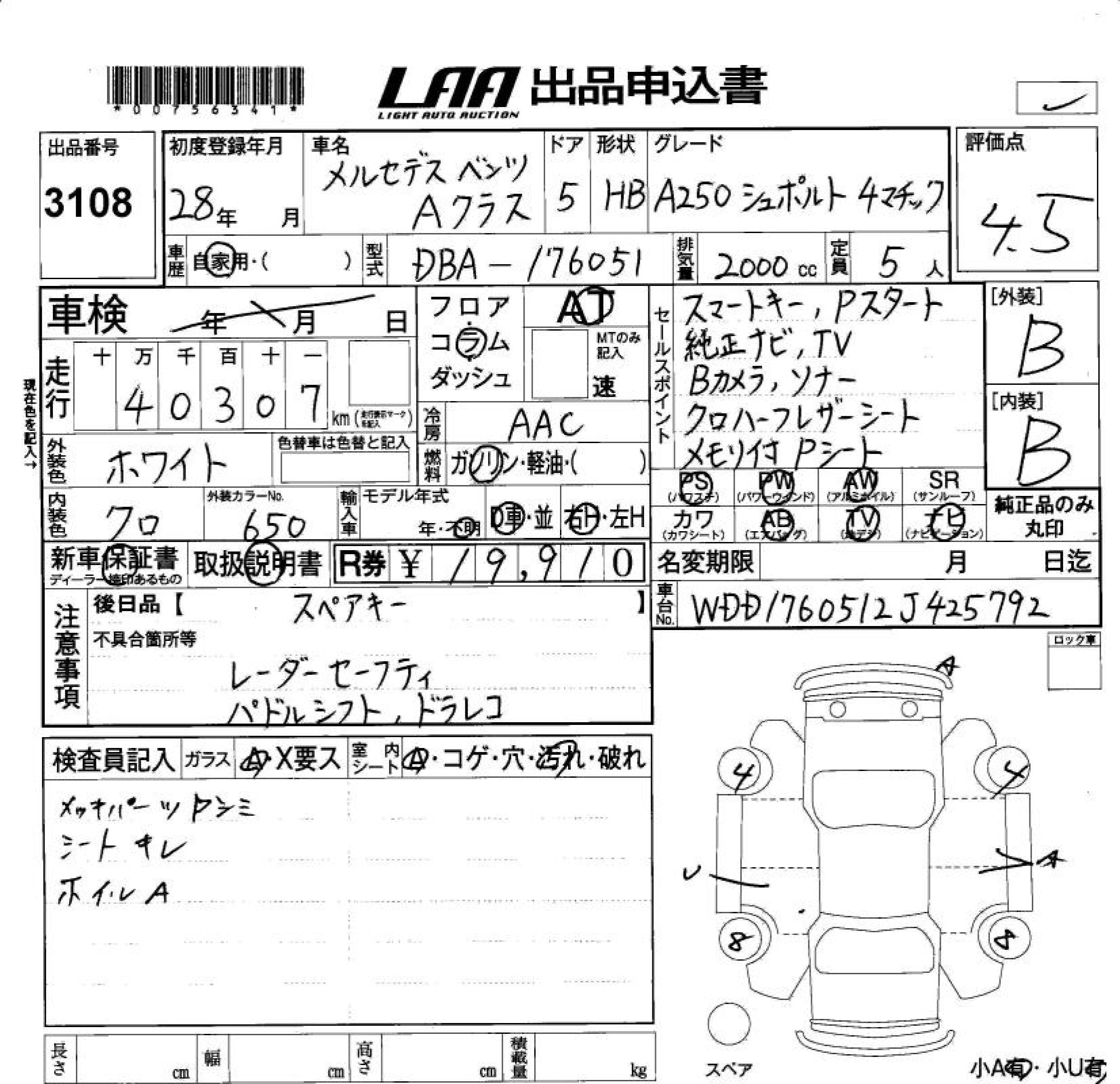 MERCEDES-BENZ A CLASS A250 SPORT 4MACHI - лот 3108