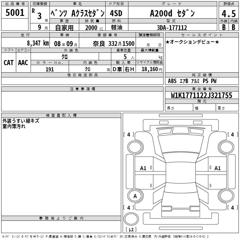 MERCEDES-BENZ A CLASS A200D SEDAN - лот 5001