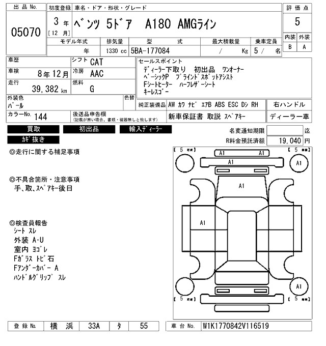 MERCEDES-BENZ A CLASS A180 AMG LINE - лот 5070