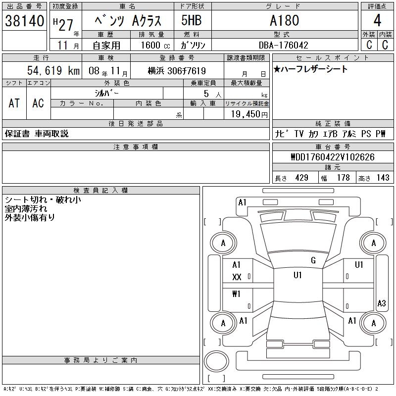 MERCEDES-BENZ A CLASS A180 - лот 38140