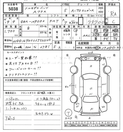 MERCEDES-BENZ A CLASS A170 ELEGANCE - лот 5038
