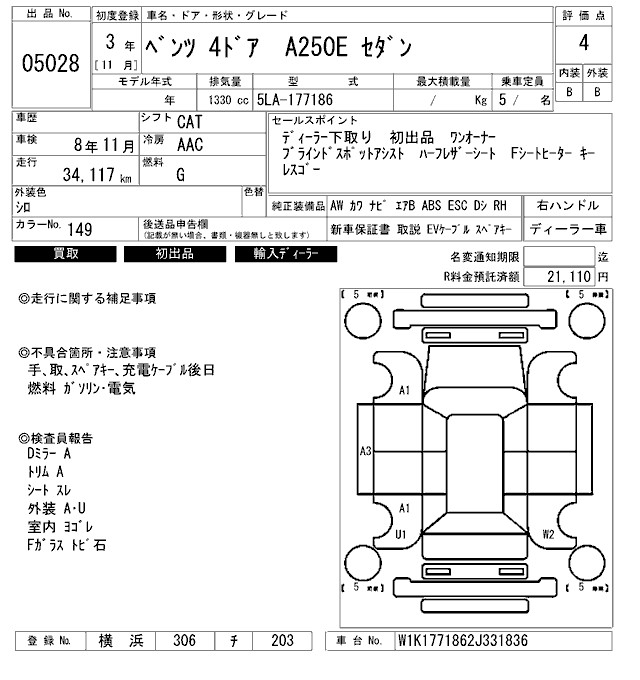 MERCEDES-BENZ A CLASS A250E SEDAN - лот 5028
