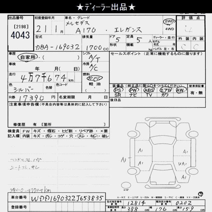MERCEDES-BENZ A CLASS A170 ELEGANCE - лот 4043
