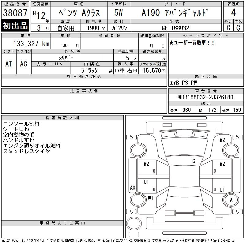 MERCEDES-BENZ A CLASS A190 AVANTGARDE - лот 38087