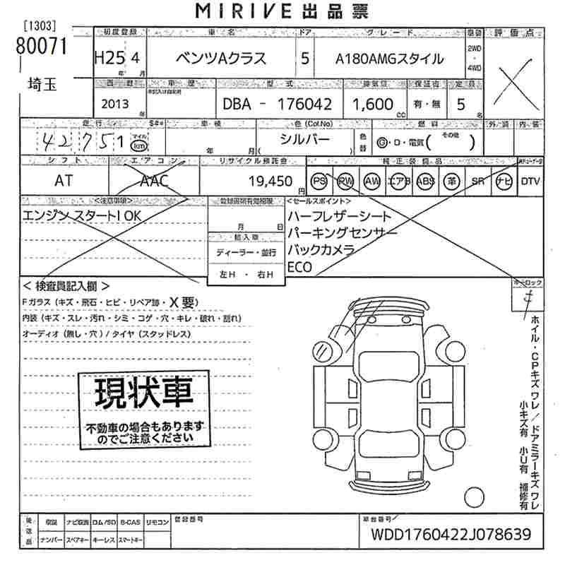 MERCEDES-BENZ A CLASS A180AMG STYLE - лот 80071