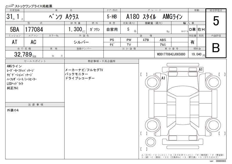 MERCEDES-BENZ A CLASS - лот 933