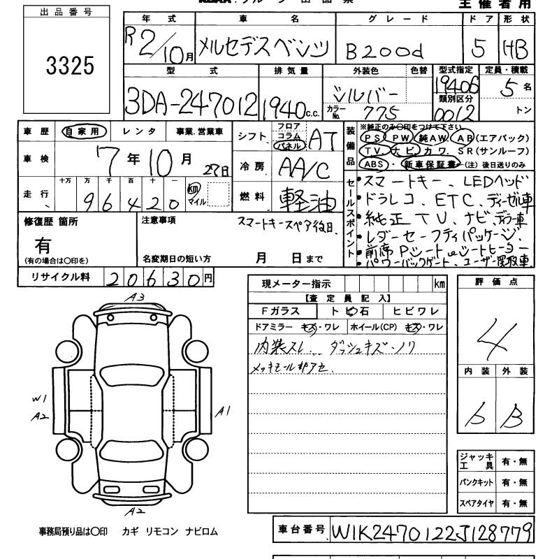MERCEDES-BENZ B CLASS - лот 3325