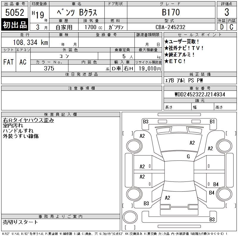 MERCEDES-BENZ B CLASS - лот 5052