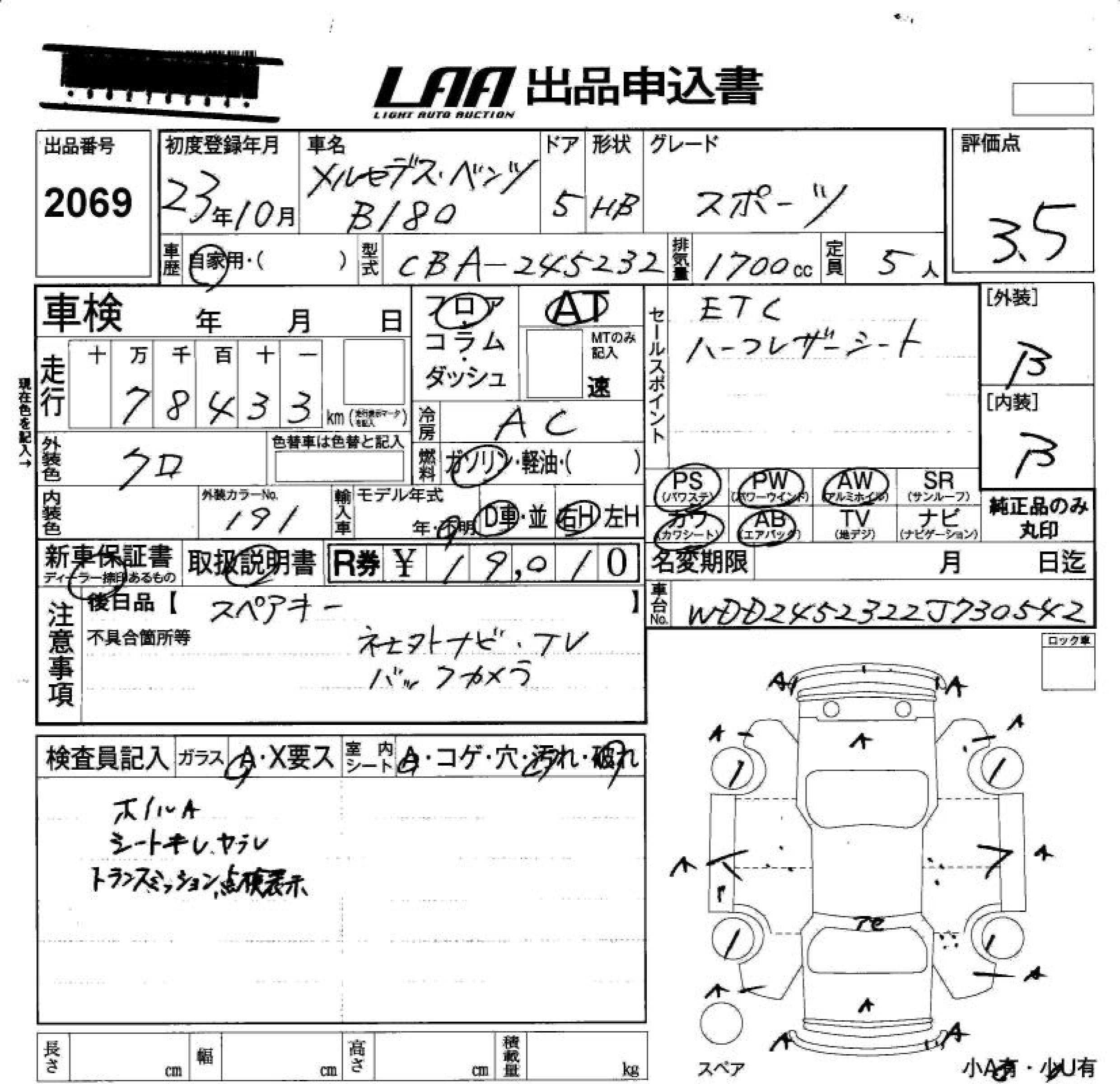 MERCEDES-BENZ B CLASS - лот 2069