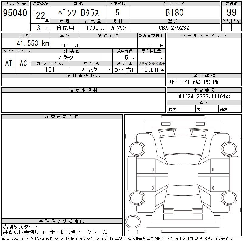 MERCEDES-BENZ B CLASS - лот 95040