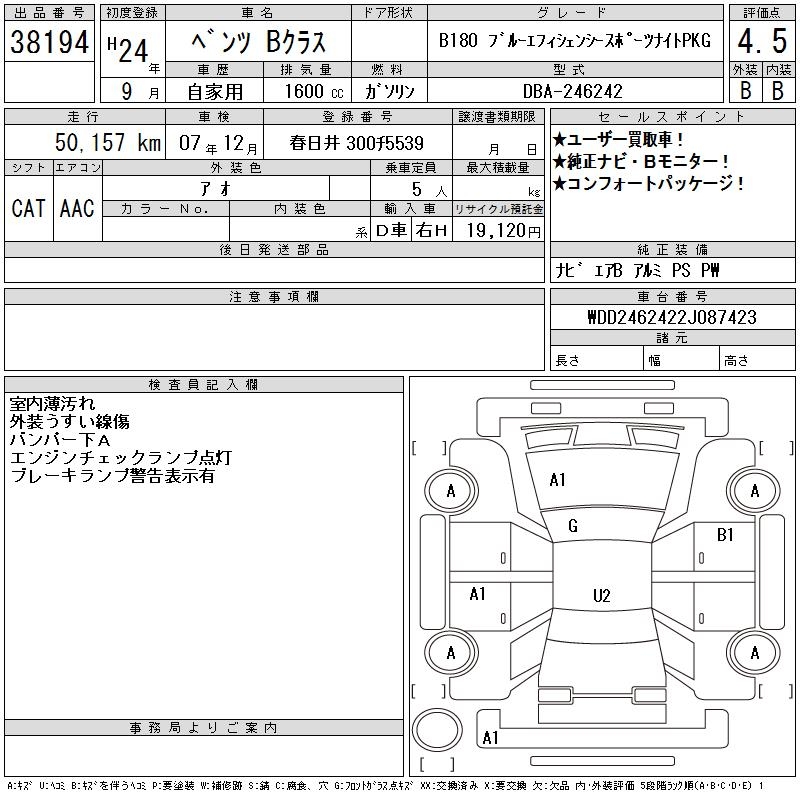 MERCEDES-BENZ B CLASS - лот 38194