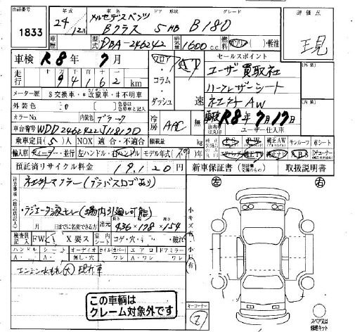 MERCEDES-BENZ B CLASS - лот 1833