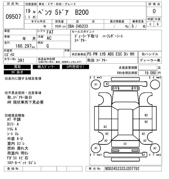 MERCEDES-BENZ B CLASS - лот 9507
