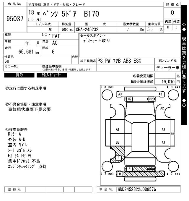 MERCEDES-BENZ B CLASS - лот 95037