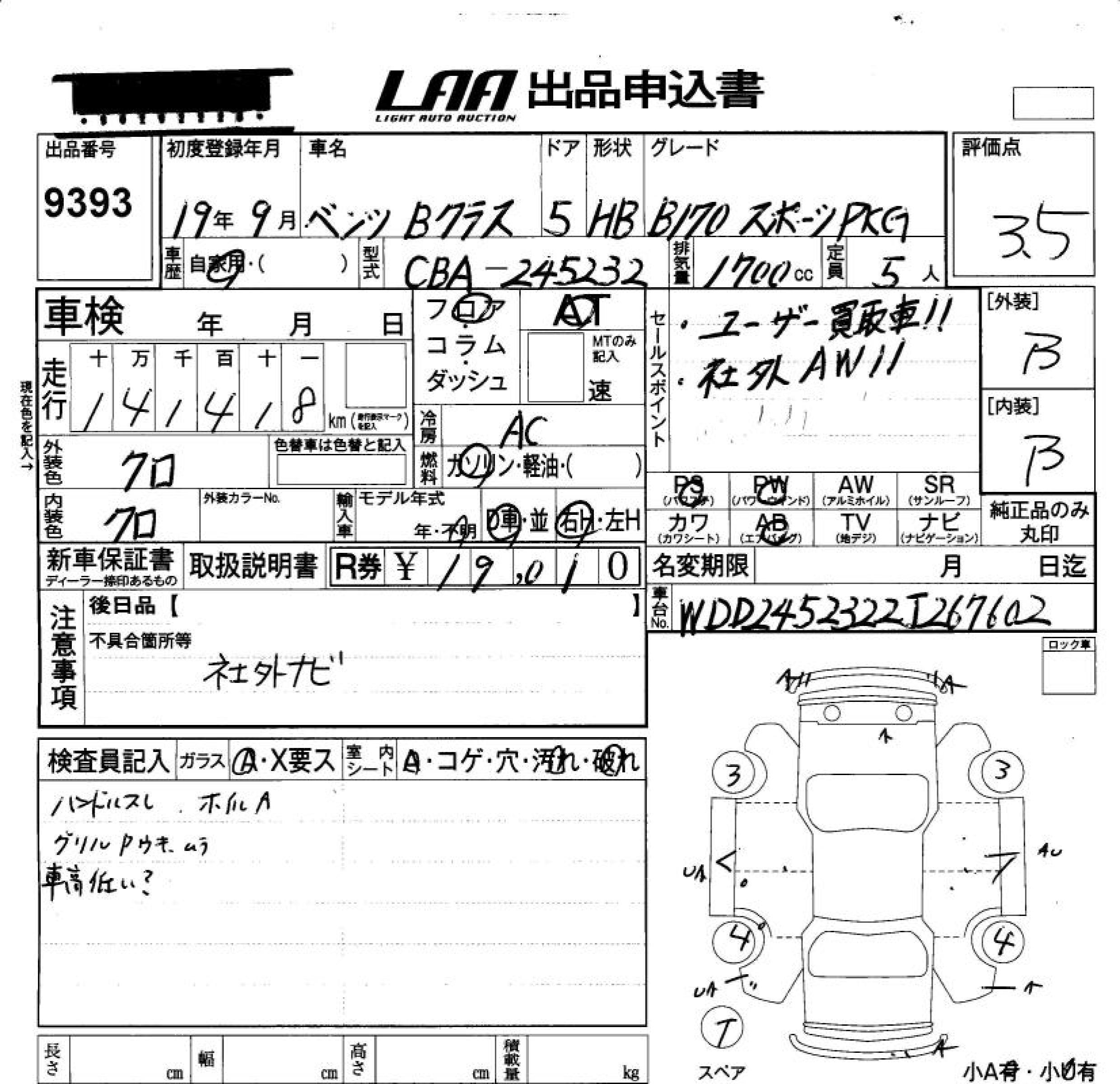 MERCEDES-BENZ B CLASS - лот 9393