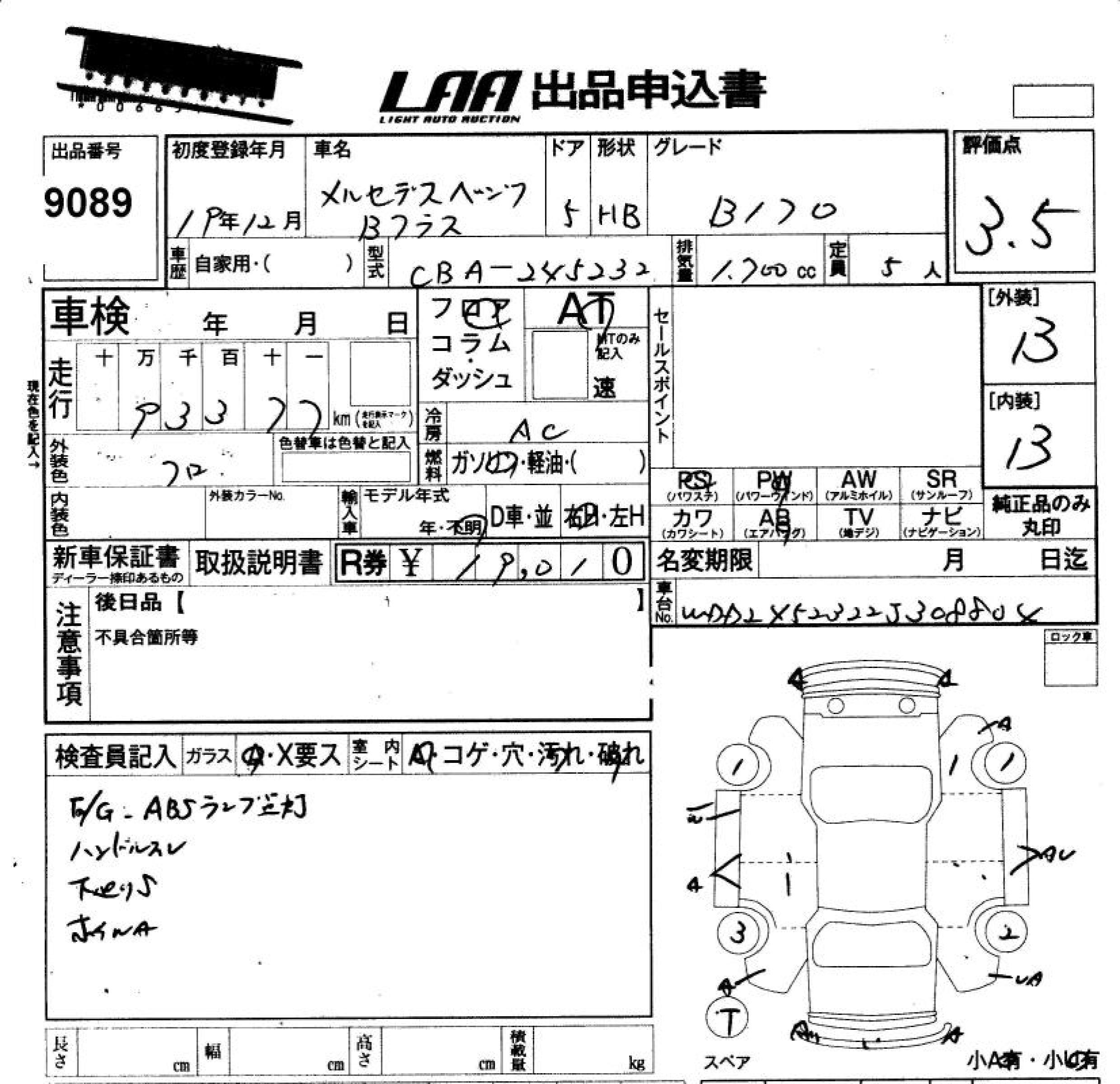 MERCEDES-BENZ B CLASS B170 - лот 9089
